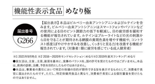 ※算出方法:論文によるとブルーベリーのルテインが 1530±24μg/100g=1.53mg/100gのため、860mgあたり、1.53*8.6/1000=13μg含まれている。本製品860mgに